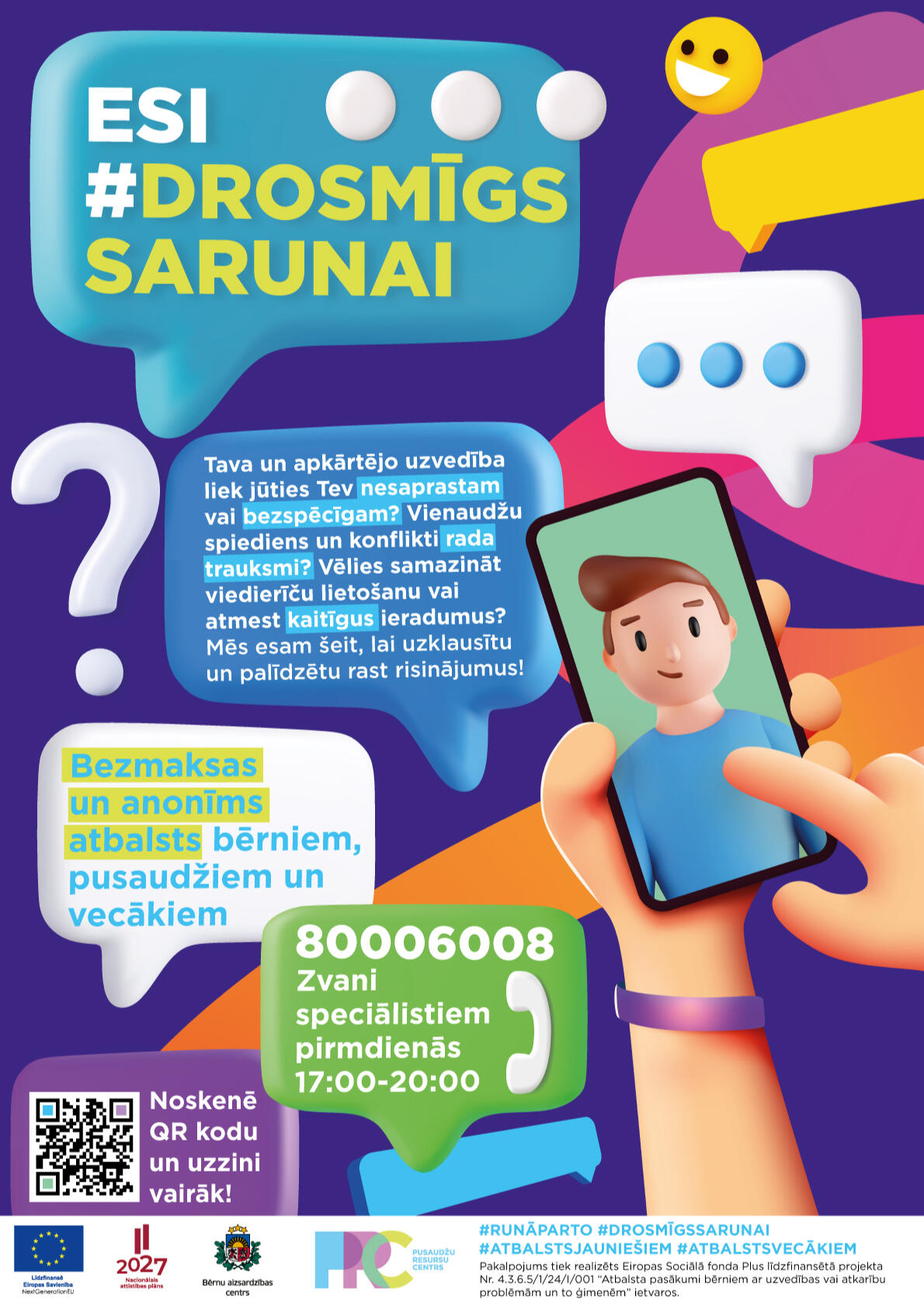 – informējam vecākus, bērnus un jauniešus, ka ir iespēja saņemt bezmaksas psiholoģisko atbalstu.